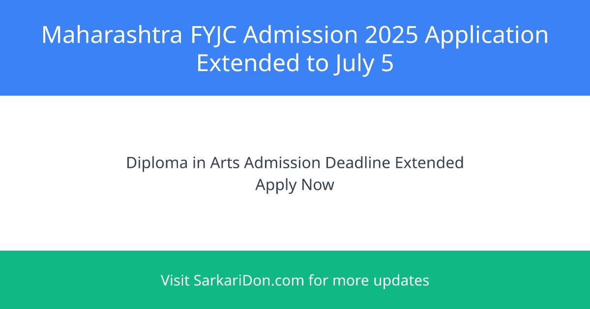 Maharashtra FYJC Admission 2025: Diploma in Arts Application Deadline Extended to July 5