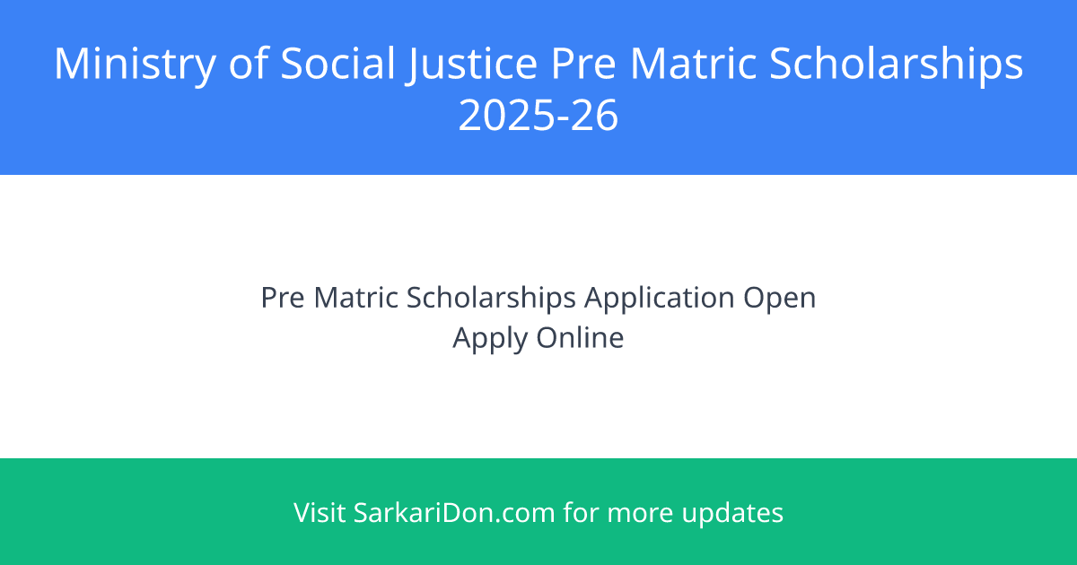 Ministry of Social Justice & Empowerment - Pre Matric Scholarships 2025-26: Empowering SC Students