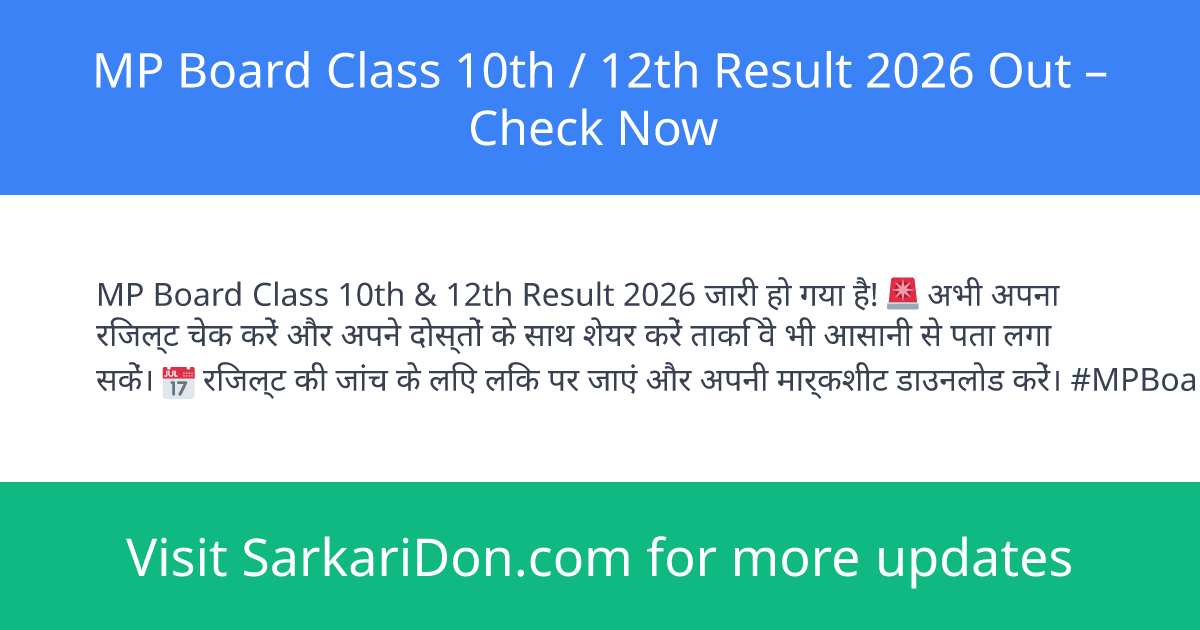 MP Board Class 10th / 12th Result 2026 Out β Check Now