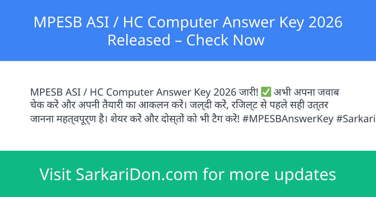 MPESB ASI / HC Computer Answer Key 2026 Released โ Check Now