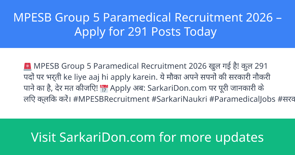 MPESB Group 5 Paramedical Recruitment 2026 โ Apply for 291 Posts Today