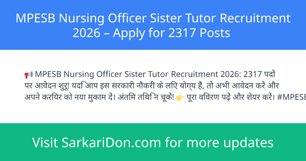 MPESB Nursing Officer Sister Tutor Recruitment 2026 โ Apply for 2317 Posts