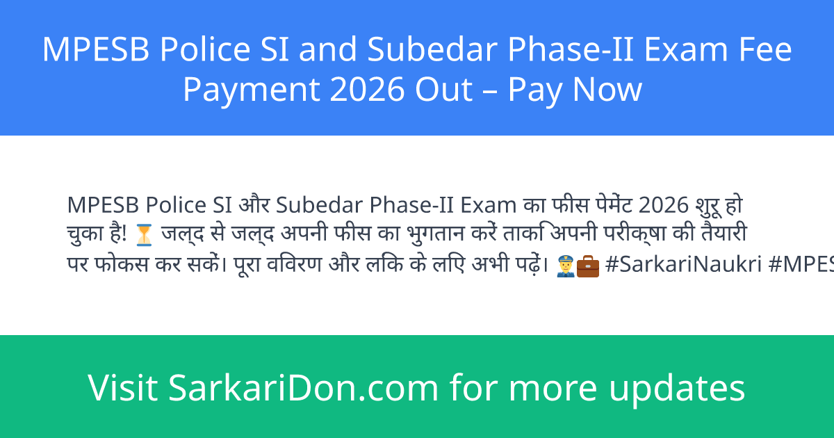 MPESB Police SI and Subedar Phase-II Exam Fee Payment 2026 Out โ Pay Now