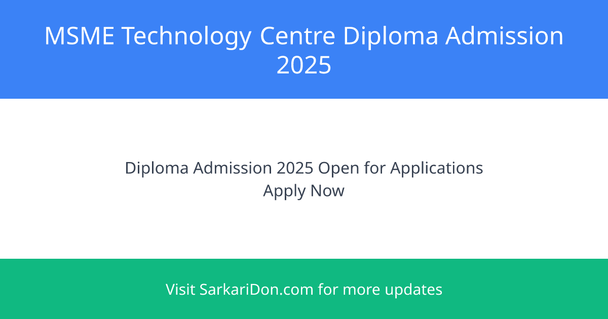 MSME Technology Centre - Diploma Admission 2025: A Gateway to Career Opportunities