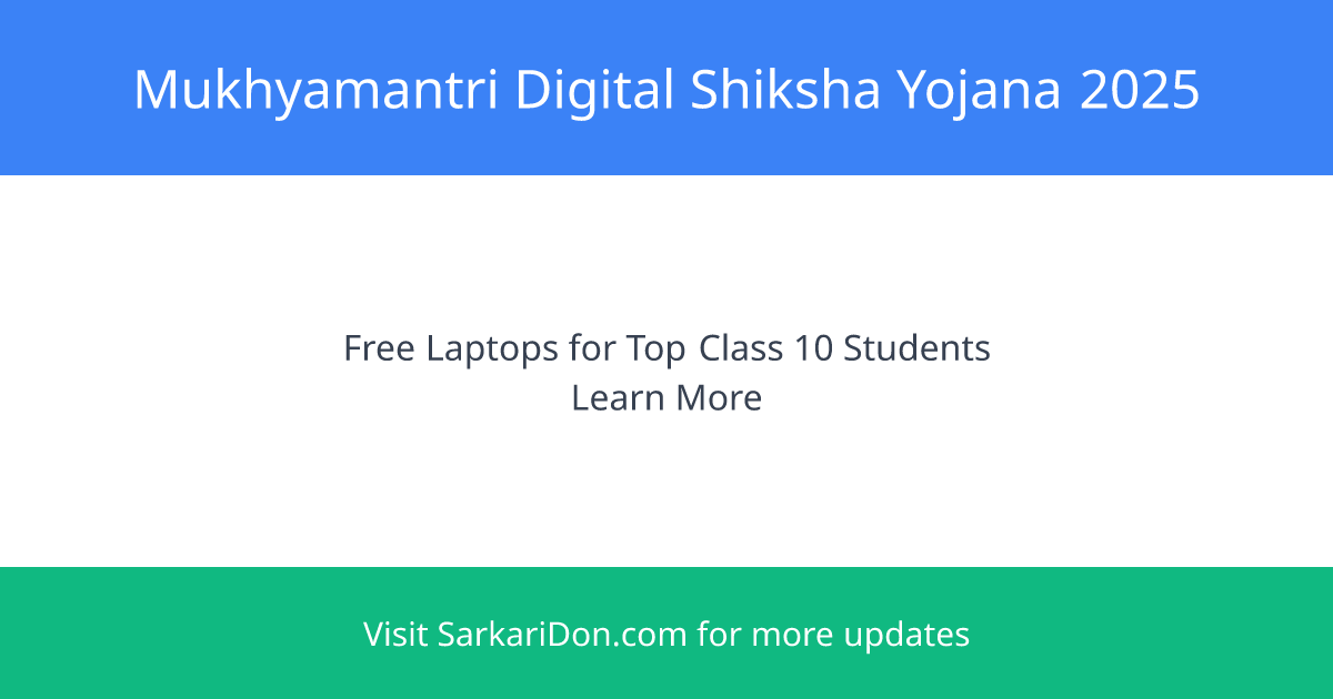 Mukhyamantri Digital Shiksha Yojana 2025: Free Laptops for Meritorious Students