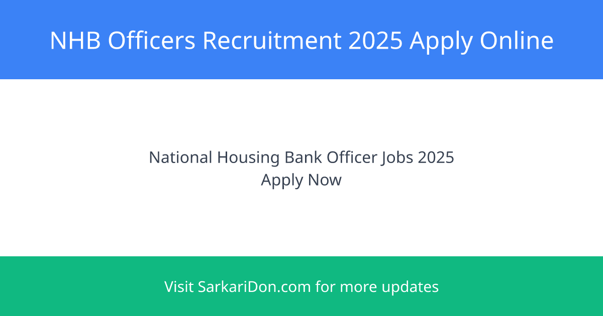 National Housing Bank Officers Recruitment 2025 - Apply Online for Government Jobs