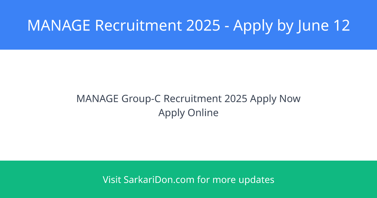 The National Institute of Agricultural Extension Management (MANAGE) is inviting applications for the recruitment of various Group-C posts. If you are looking for a sarkari naukri, this is your chance to apply and take your career to new heights!