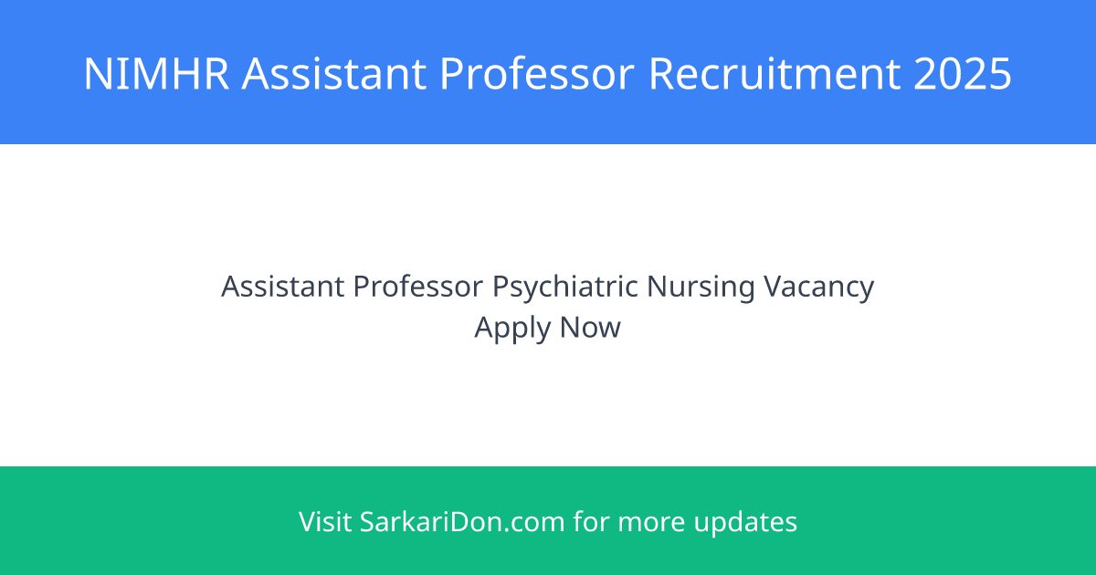 National Institute of Mental Health Rehabilitation Assistant Professor (Psychiatric Nursing) Recruitment 2025
