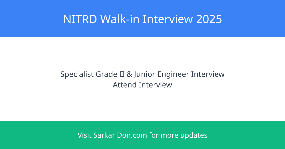 Eligible candidates should attend the walk-in interview along with their applications in the prescribed format. For more details regarding age, qualifications, terms and conditions, and to download the application form, please visit the official NITRD website.