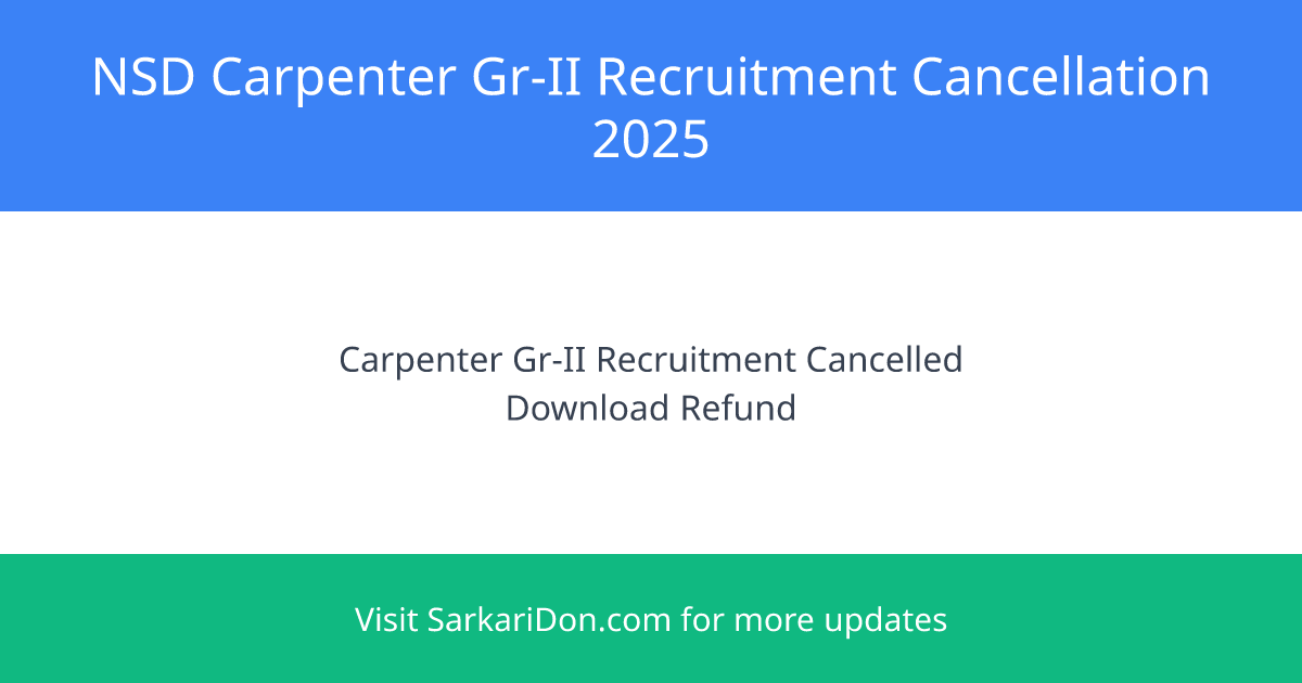 The National School of Drama (NSD) has officially announced the cancellation of previously published recruitment for the post of Carpenter Gr-II (UR), which was advertised in the Employment Newspaper dated 17-10-2020 (Advertisement No. DAVP 09130/11/001/2021). This cancellation follows the recommendations from the National Commission of Schedule Tribes.