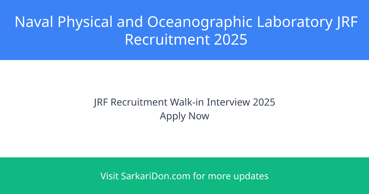 Naval Physical and Oceanographic Laboratory Junior Research Fellow Recruitment 2025