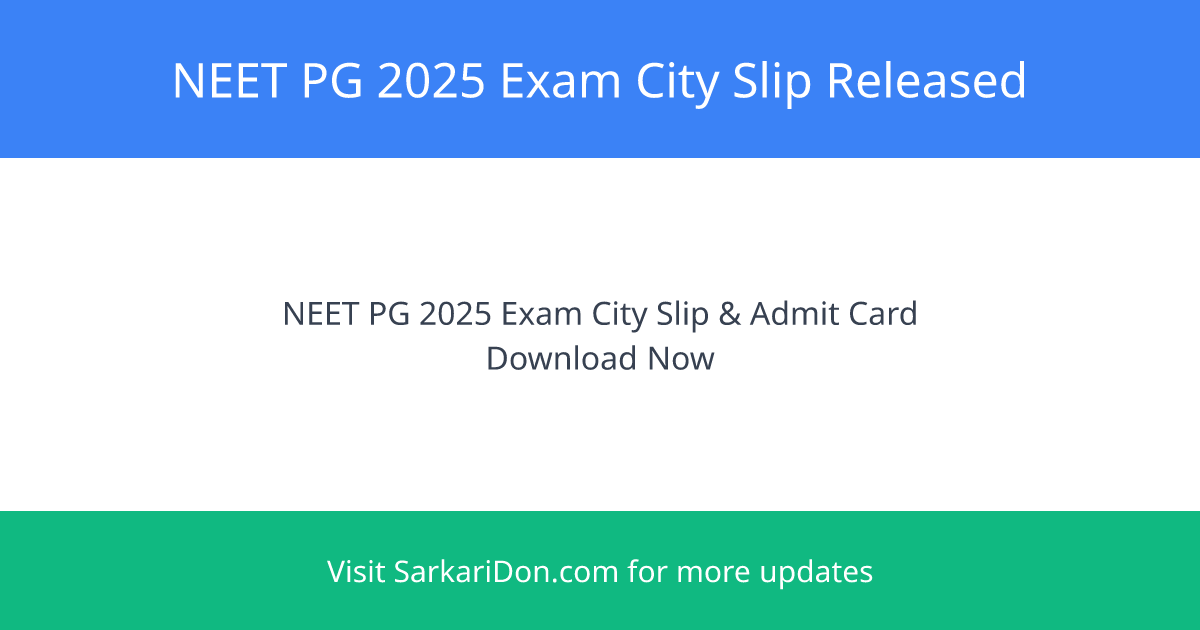 NEET PG 2025 Exam City Intimation Slips Released Today – Important Dates and Details
