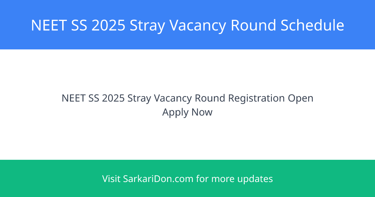 NEET SS 2025 Stray Vacancy Round Schedule Announced
