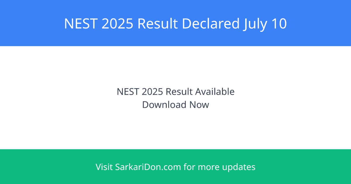The NEST 2025 result will be declared today, July 10, 2025, on the official NEST website: nestexam.in. Candidates can download their scorecards by following these steps: