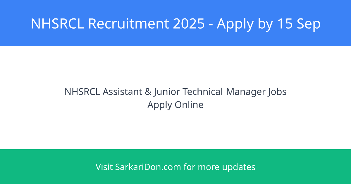 NHSRCL Recruitment 2025: Apply for 36 Assistant and Junior Technical Manager Posts!