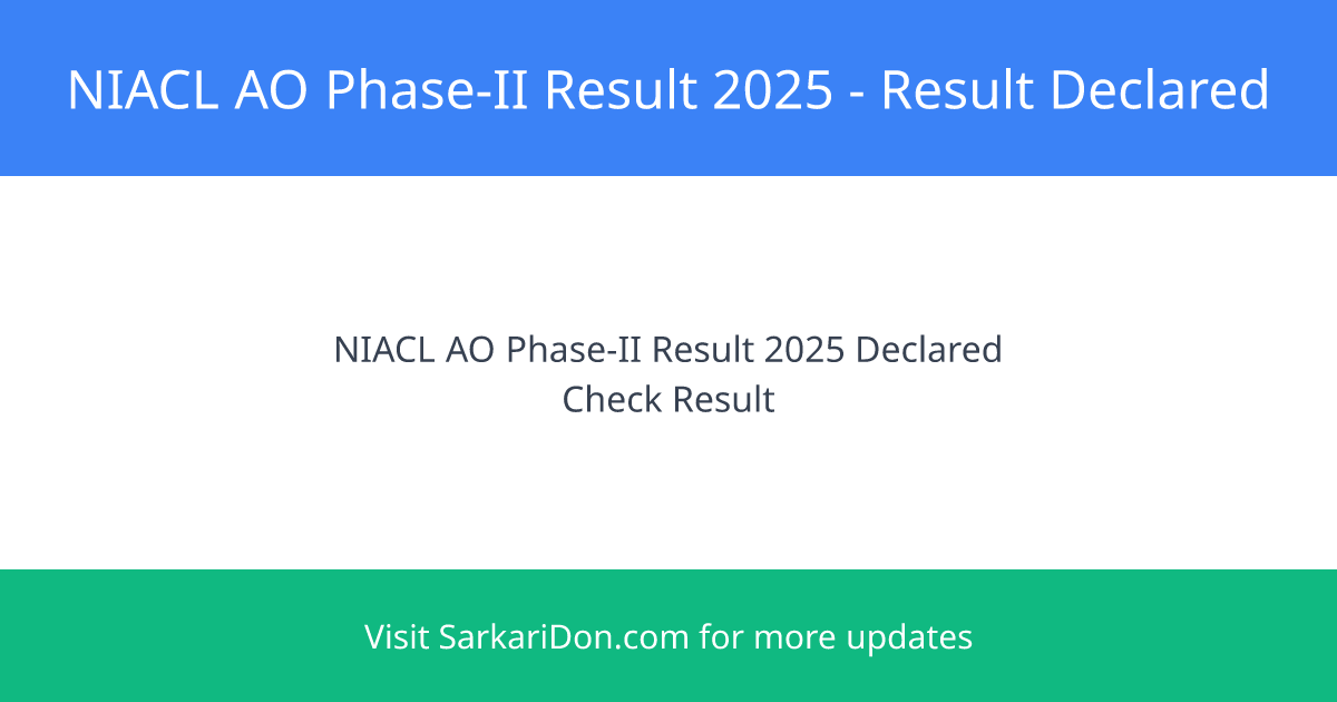 The New India Assurance Company Limited (NIACL) has declared the Phase-II result for the Administrative Officer (AO) Exam 2025. The exam phase-II was conducted on 29 October 2025. Candidates can check their results online using their Enrollment Number, Registration Number, or Date of Birth.