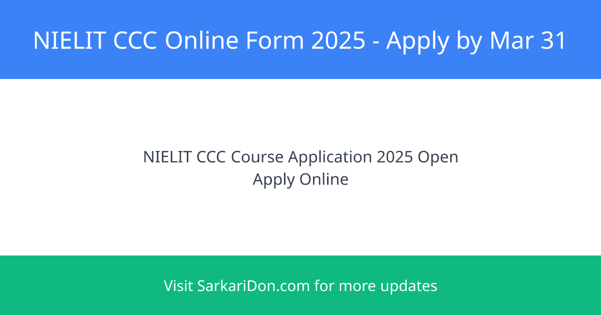 NIELIT CCC Online Form 2025 – Apply Online for Course on Computer Concepts