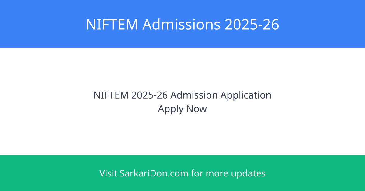 NIFTEM Admissions 2025-26: BTech, MTech, and PhD in Food Technology
