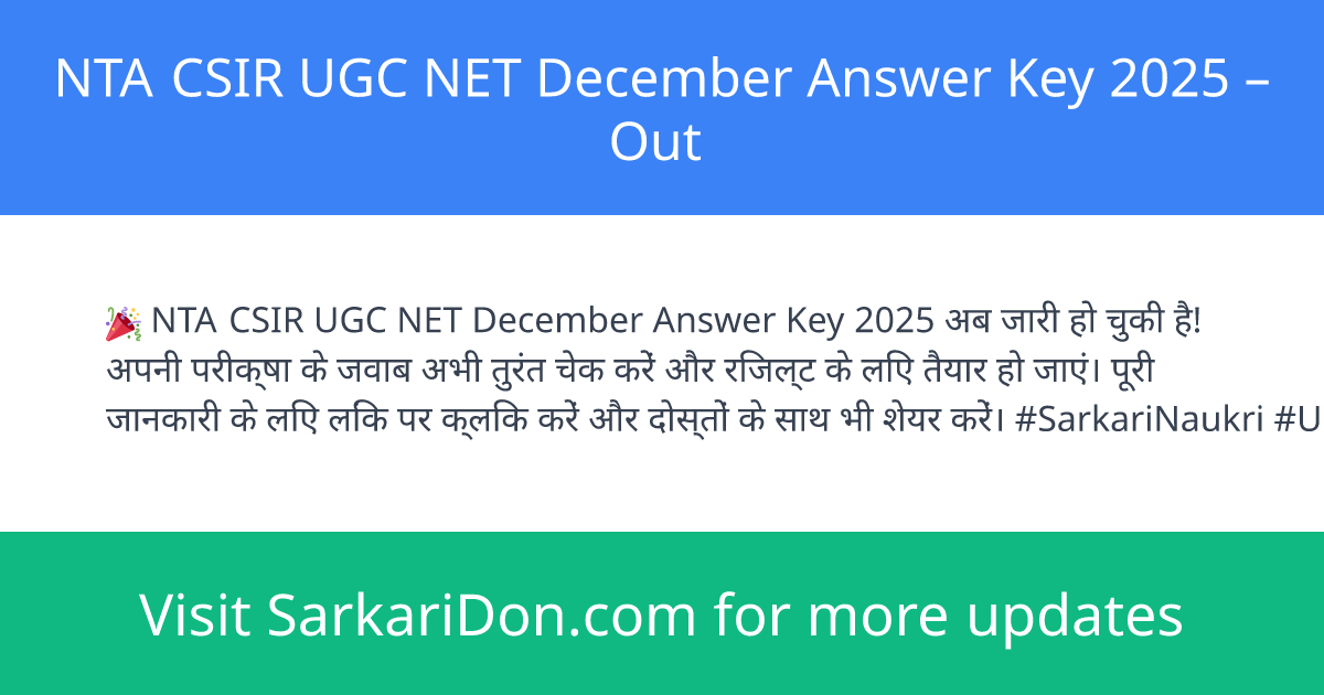 NTA CSIR UGC NET December Answer Key 2025 β Out