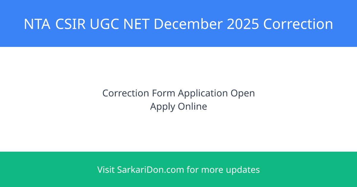 The National Testing Agency (NTA) has released the official notification for the CSIR UGC NET December 2025 examination correction form. Candidates can now apply and make corrections in their application forms for this prestigious government teaching exam.