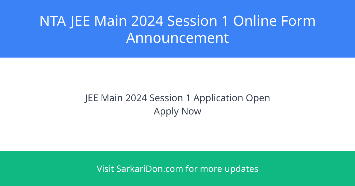 NTA JEE Main 2024 Session 1: Online Form Announcement