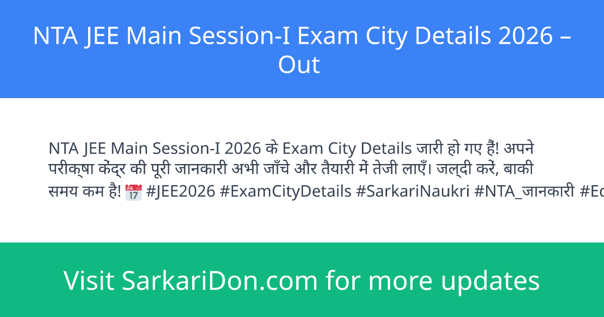 NTA JEE Main Session-I Exam City Details 2026 – Out