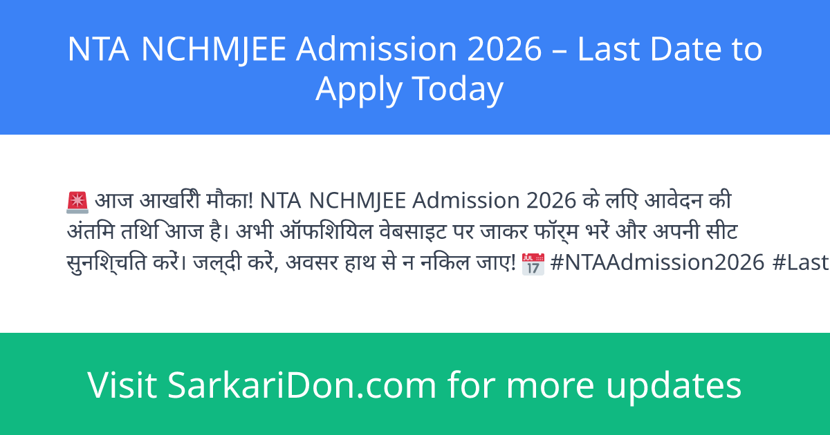 Today, April 1, 2026, is the last date to submit the online application for the National Testing Agency (NTA) National Council of Hotel Management Joint Entrance Examination (NCHMJEE) 2026. Candidates aspiring to join Hotel Management courses must complete their application process by the end of the day on the official NTA portal.