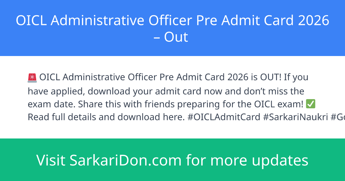 This post provides the verified status for the OICL Administrative Officer (Pre) Admit Card 2026 based only on the supplied recruitment data. According to the verified data, the recruitment status is ignored with the reason: "All official dates have already passed". No official admit card download link, dates, vacancy details, eligibility, fee, or exam pattern were provided in the verified input. This sarkari naukri update is informational only.