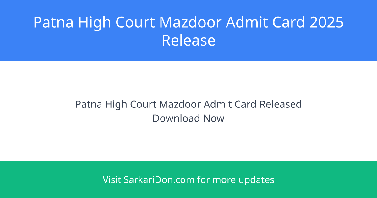 This update is crucial for candidates tracking their sarkari result, government job result, and specifically those looking for the Patna High Court Mazdoor Admit Card 2025. Other relevant searches include Patna High Court Mazdoor Exam Date 2025, Patna High Court Recruitment 2025, and Bihar Government Jobs Admit Card.