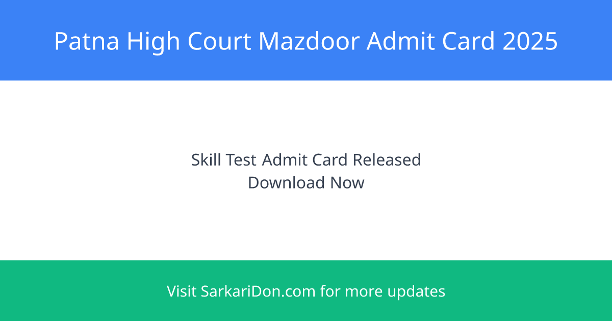 Admit Card Released! Download your Patna High Court Mazdoor Skill Test Admit Card 2025 from the direct official link below.