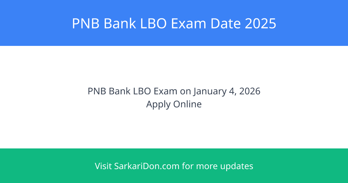 The Punjab National Bank (PNB) has officially announced the exam date for the Local Bank Officer (LBO) Examination 2025. This is a prime opportunity for aspirants looking to secure a government job in the banking sector. The examination is scheduled to be held on January 4, 2026. The last date to apply was December 1, 2025 (extended).