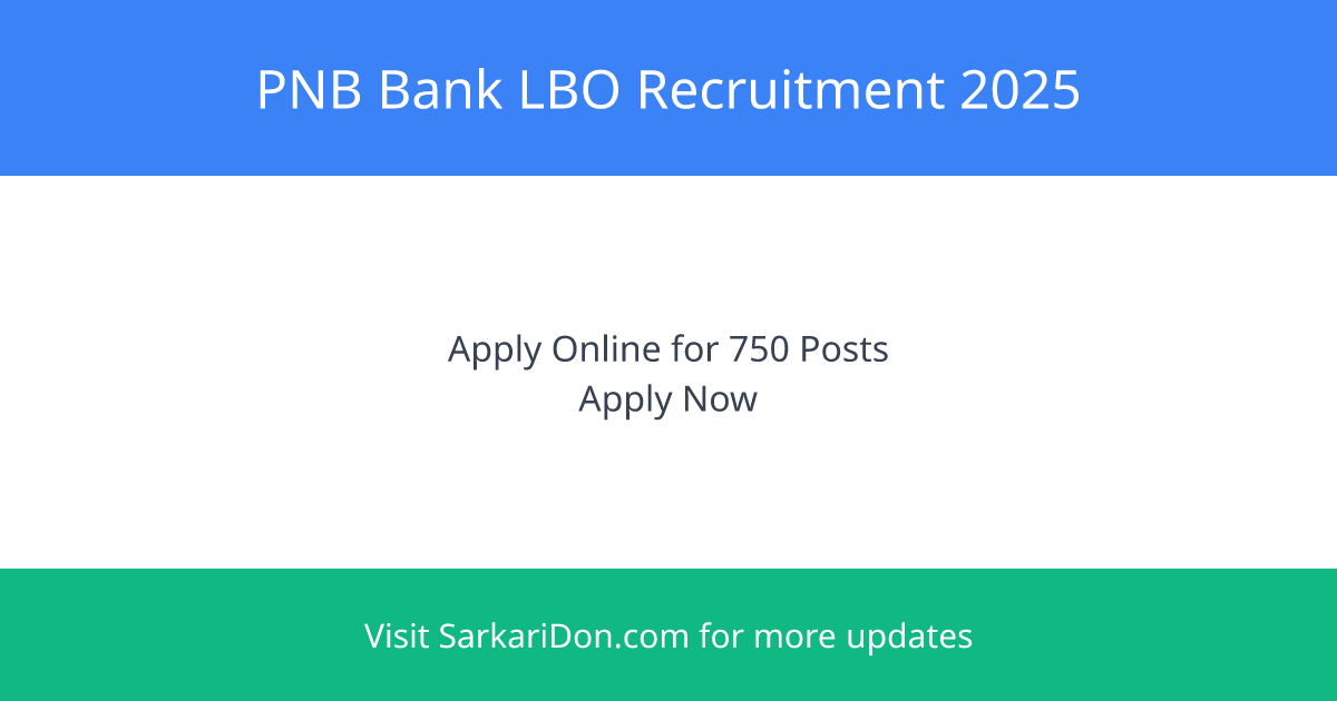 PNB Bank LBO Recruitment 2025: Apply for 750 Posts Now!