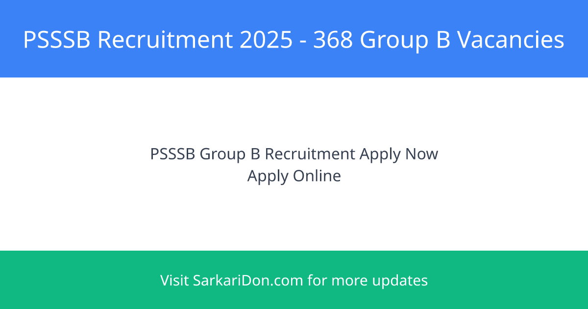 PSSSB Recruitment 2025: 368 Group B Vacancies Available Now!