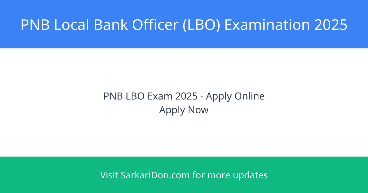 Punjab National Bank (PNB) invites applications for the Local Bank Officer (LBO) Examination 2025. This is a government job opportunity at a major public sector bank. Candidates with a Bachelorโs Degree in any discipline may apply. The official notification and application details are provided below.