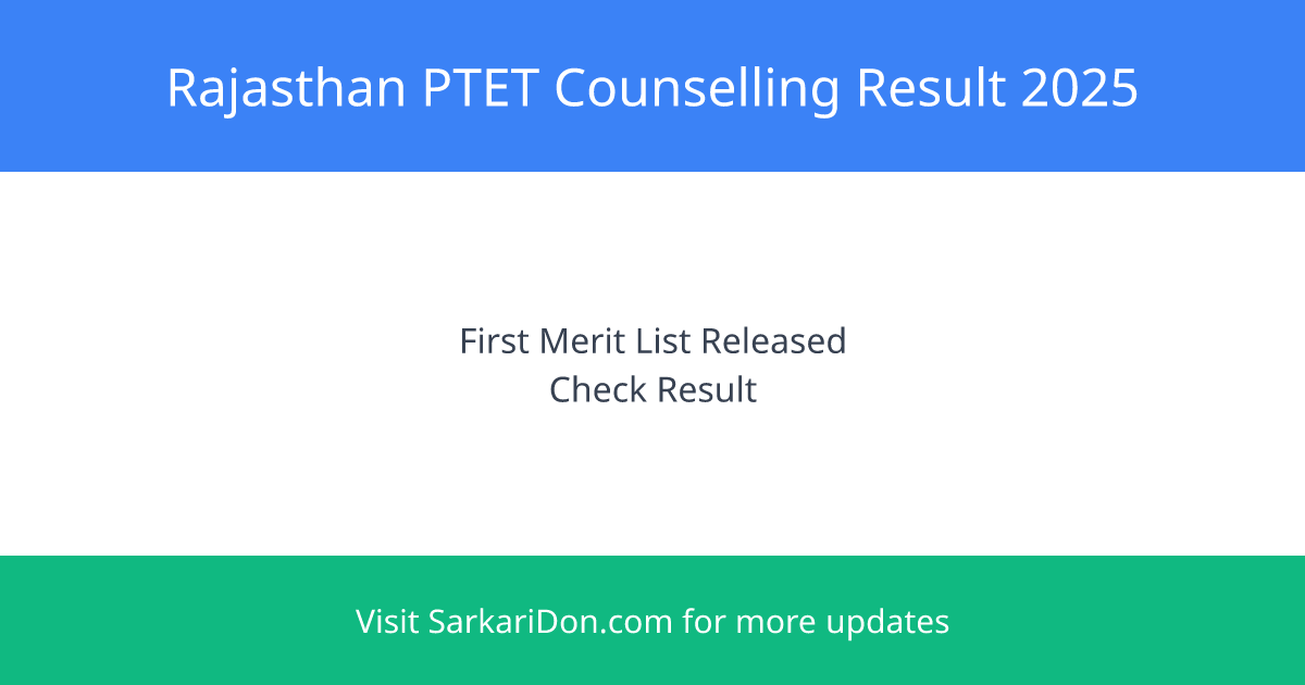 The Rajasthan Pre-Teacher Education Test (PTET) 2025 Round 1 seat allotment result has been officially announced on July 25, 2025, by Vardhman Mahaveer Open University (VMOU), Kota—the conducting authority of the exam. Here’s a detailed breakdown of the process, outcome, and next steps.