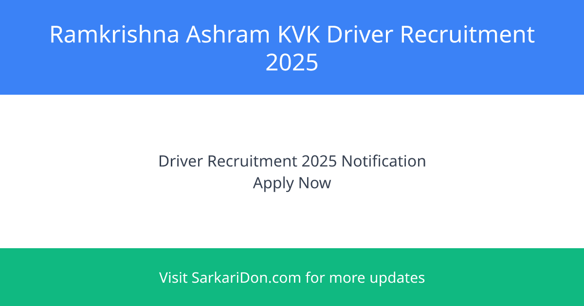 Ramkrishna Ashram Krishi Vigyan Kendra Driver Recruitment 2025