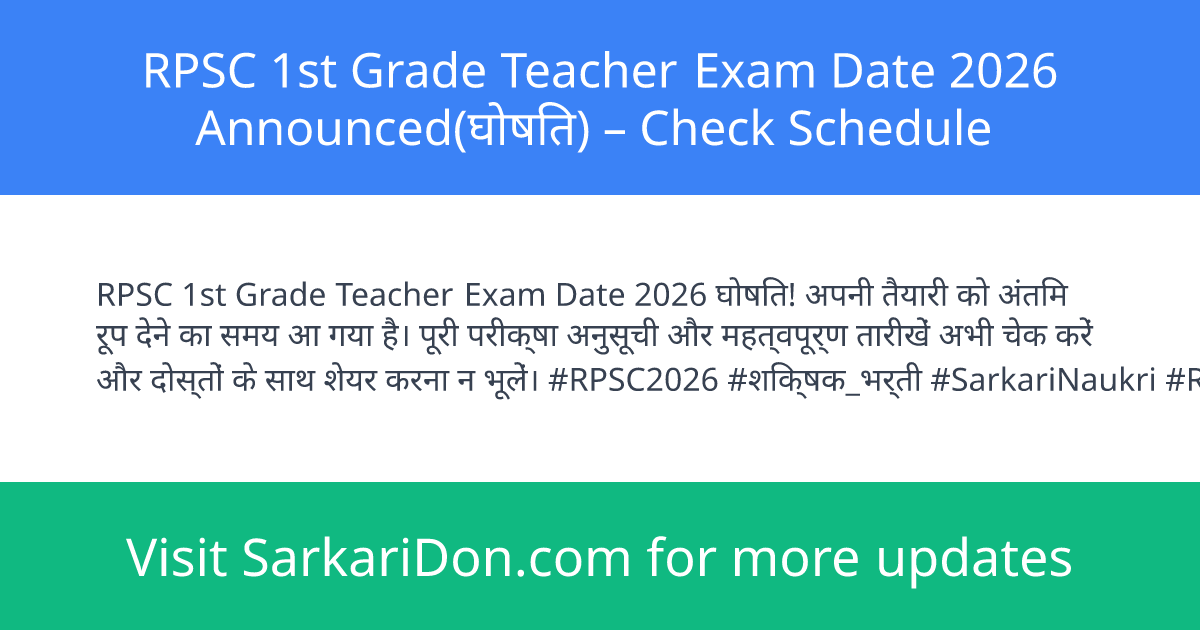 RPSC 1st Grade Teacher Exam Date 2026 Announced(घोषित) – Check Schedule