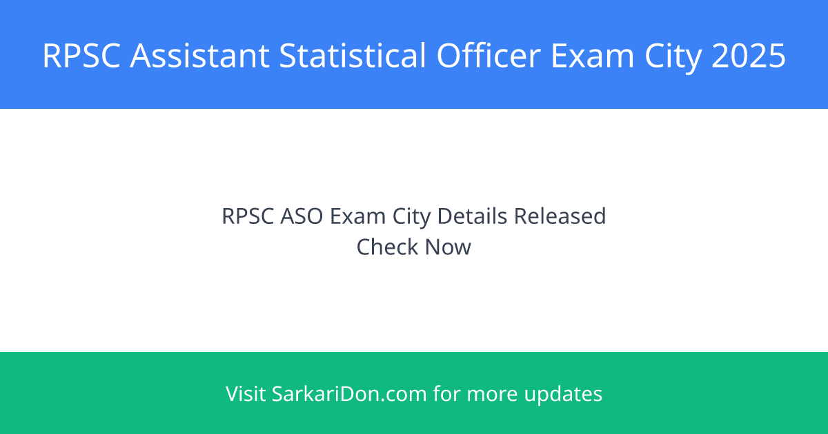 The Rajasthan Public Service Commission (RPSC) has officially released the Exam City Details for the post of Assistant Statistical Officer (ASO) for the year 2025. This recruitment drive offers 64 vacancies and invites eligible candidates to apply online.