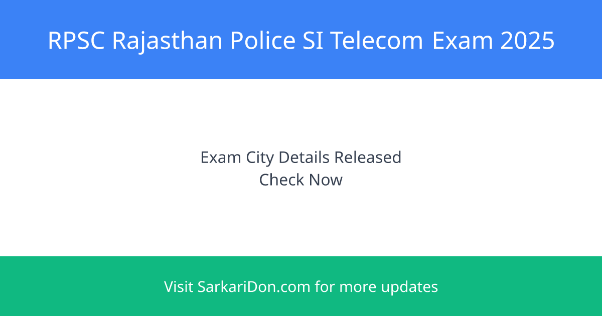 - Q: Has the RPSC Rajasthan Police SI Telecom Exam City Details 2025 been released?