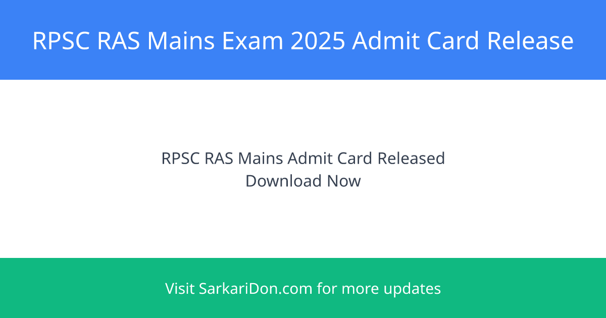 RPSC RAS Mains Exam 2025: Admit Card Released - Direct Download Link
