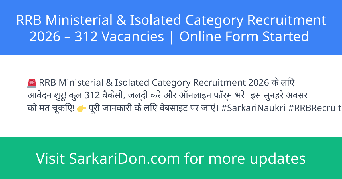 RRB Ministerial & Isolated Category Recruitment 2026 โ 312 Vacancies | Online Form Started