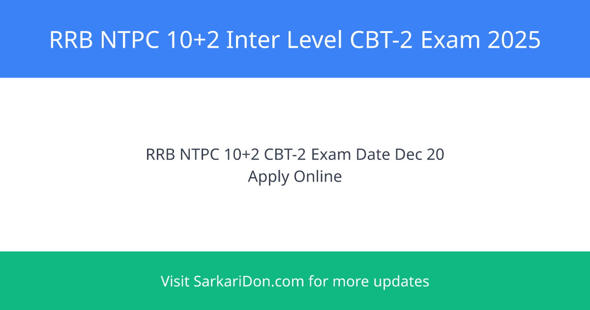 RRB NTPC 10+2 Inter Level CBT-2 Exam Date 2025 Out - Apply for 3,445 Government Job Vacancies