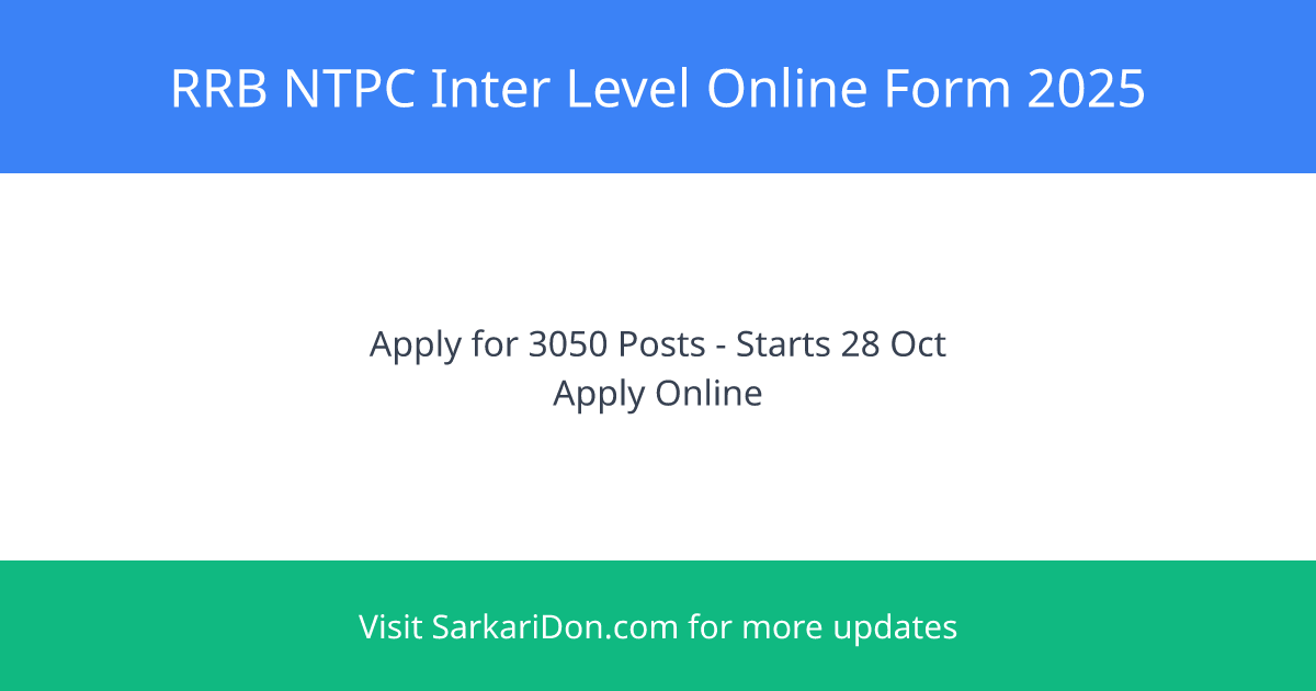 A: The online application starts on 28 October 2025. - Q: What is the last date to apply for RRB NTPC Inter Level 2025?