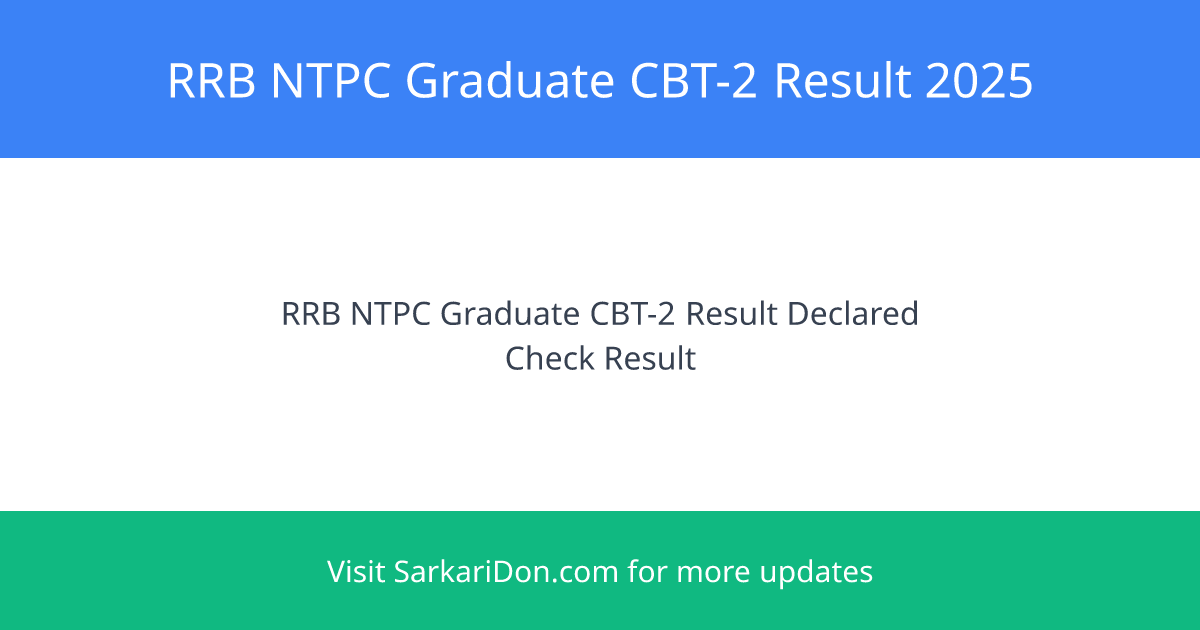 π Result Declared! The RRB NTPC Graduate CBT-2 Result 2025 is now available. Check your sarkari result on the official Railway Recruitment Board portals.