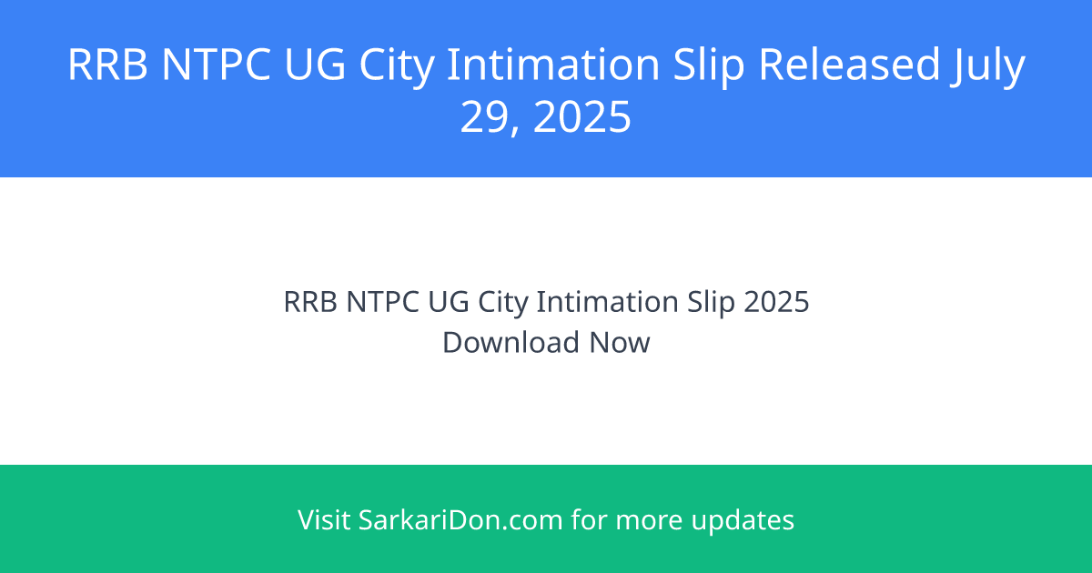 RRB NTPC UG 2025 City Intimation Slip Released – Check Your Exam Details Now!