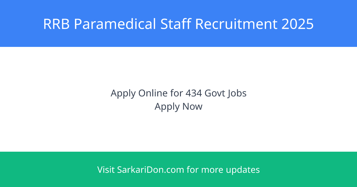 RRB Paramedical Staff Recruitment 2025 – Apply Online for 434 Govt Jobs | Official Notification