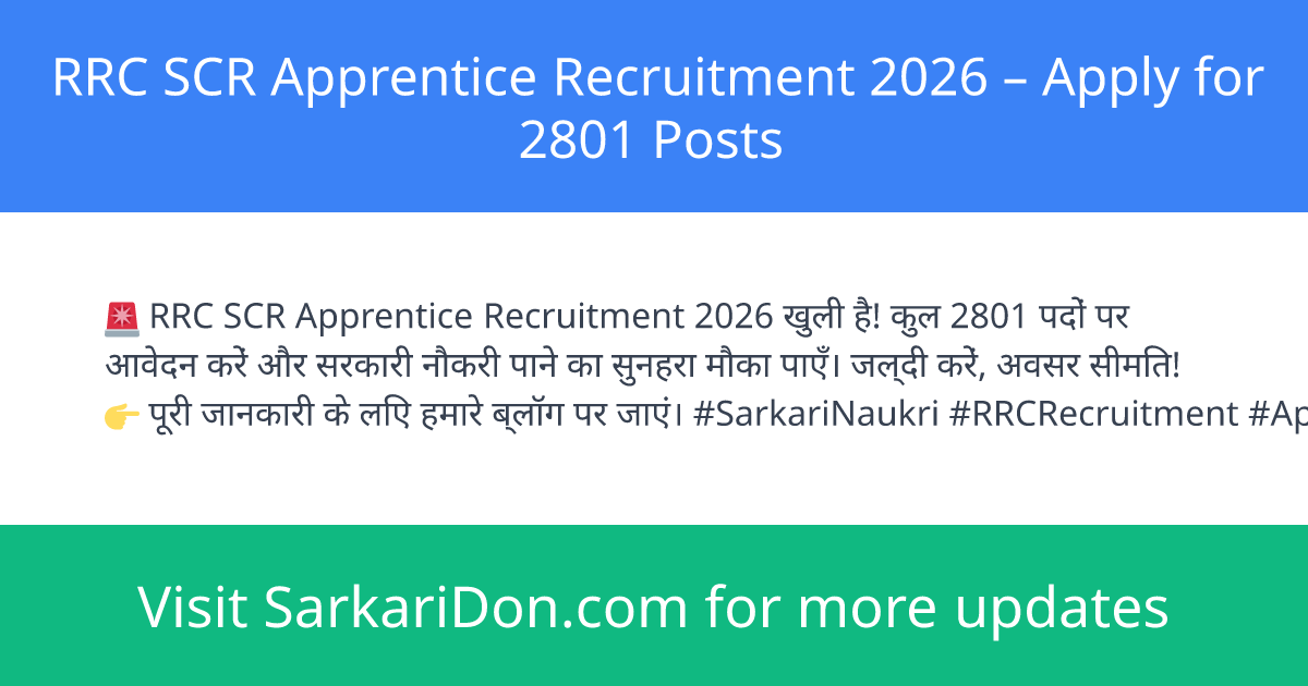 RRC SCR Apprentice Recruitment 2026 โ Apply for 2801 Posts