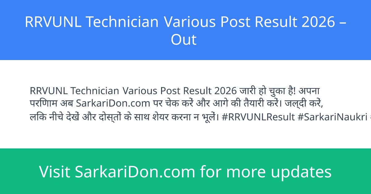 This post provides verified information related to the RRVUNL Technician Various Post Result 2026. Verified data available from the source indicates the following status: ignored. Reason provided: All official dates have already passed. For official updates, check the link given below.