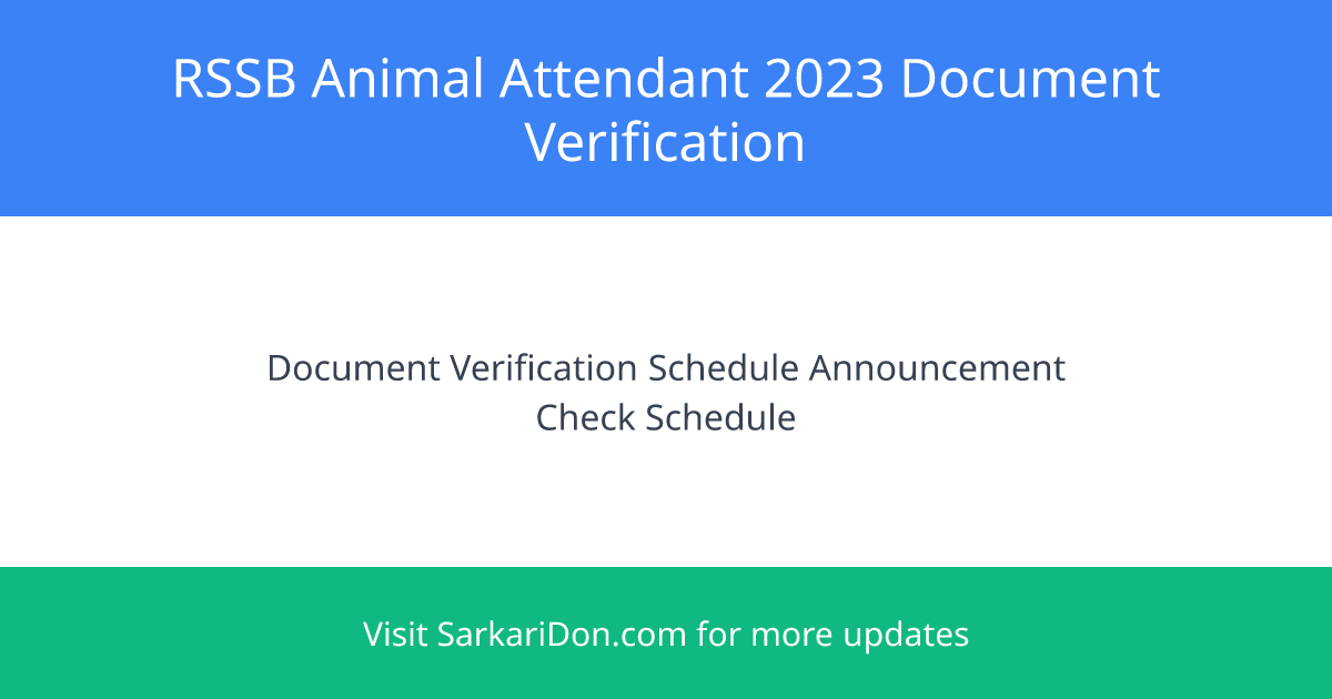 The Rajasthan Subordinate and Ministerial Services Selection Board (RSMSSB) has updated the document verification schedule for the Animal Attendant 2023 recruitment.