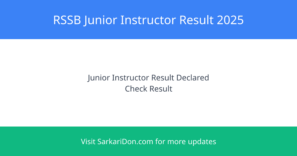 Result Declared! RSSB Junior Instructor Score Card 2025 is officially released. Check your sarkari result now using the official link below.